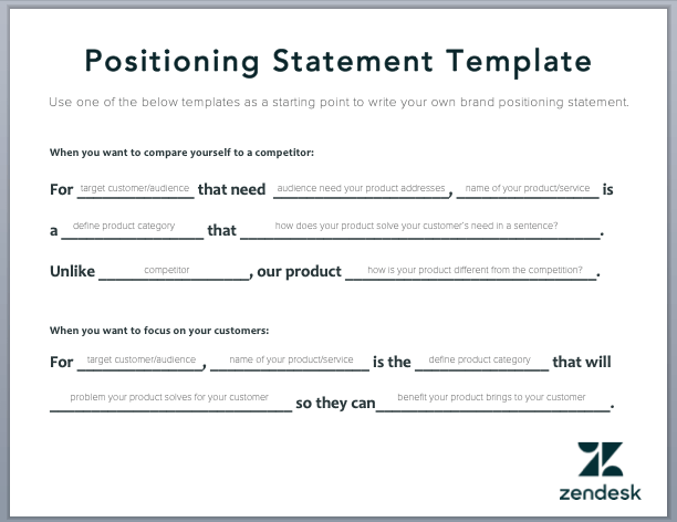 In most cases, it’s boiled down to writing a positioning statement, like the one below, kindly and unknowingly provided by Zendesk: